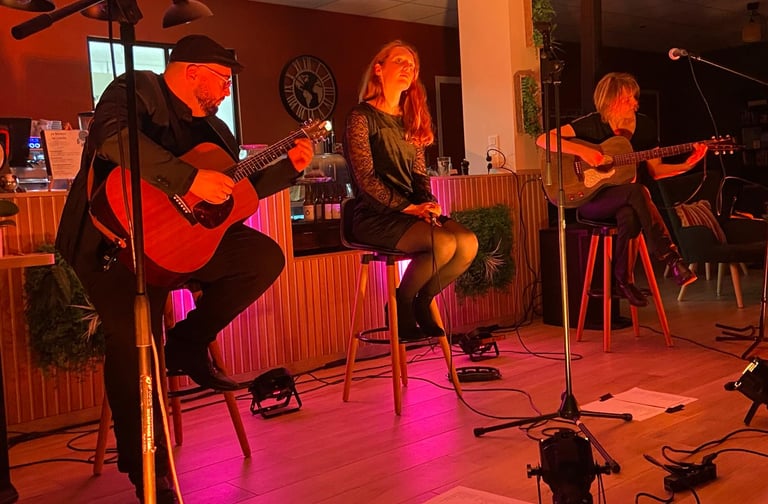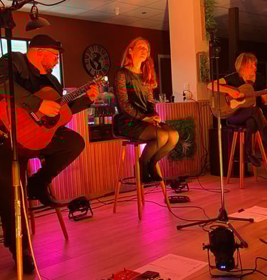 Laissez vous porter par Noémie (Chant, tambourin ), Véronique (Chant, guitare ) et Florentin (chant, guitare et Stomp-box) qui vous emmèneront dans leurs univers à base de guitare Folk et de chants en harmonie.